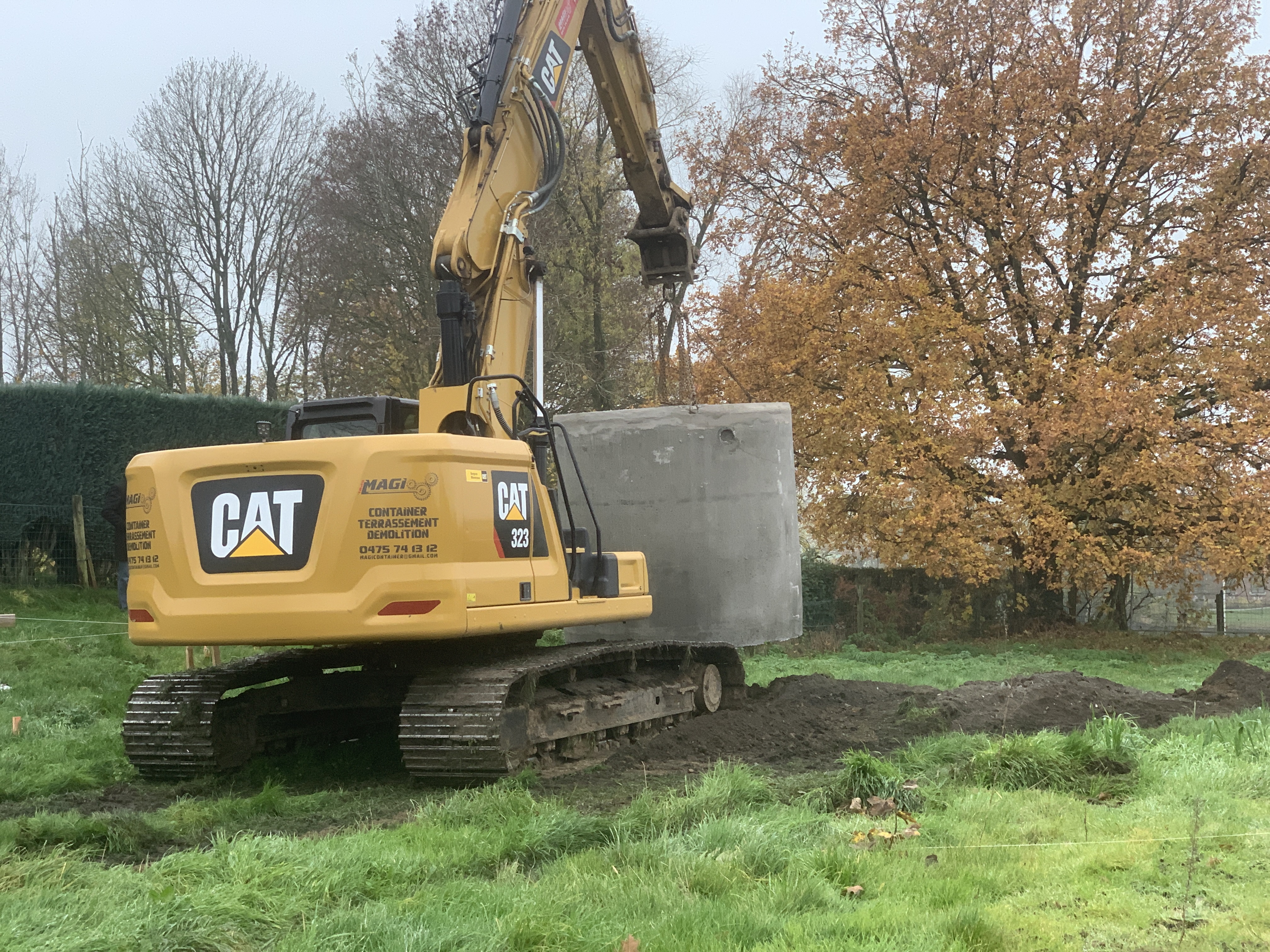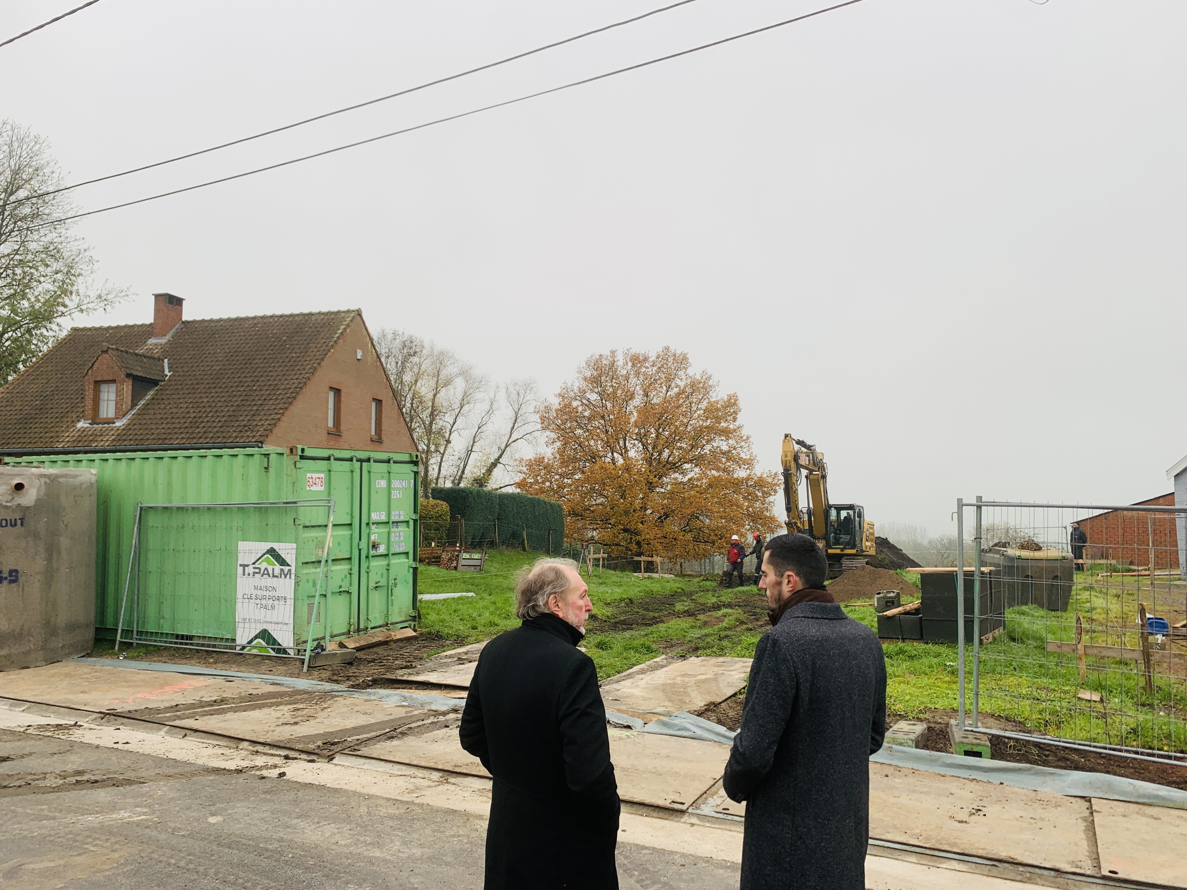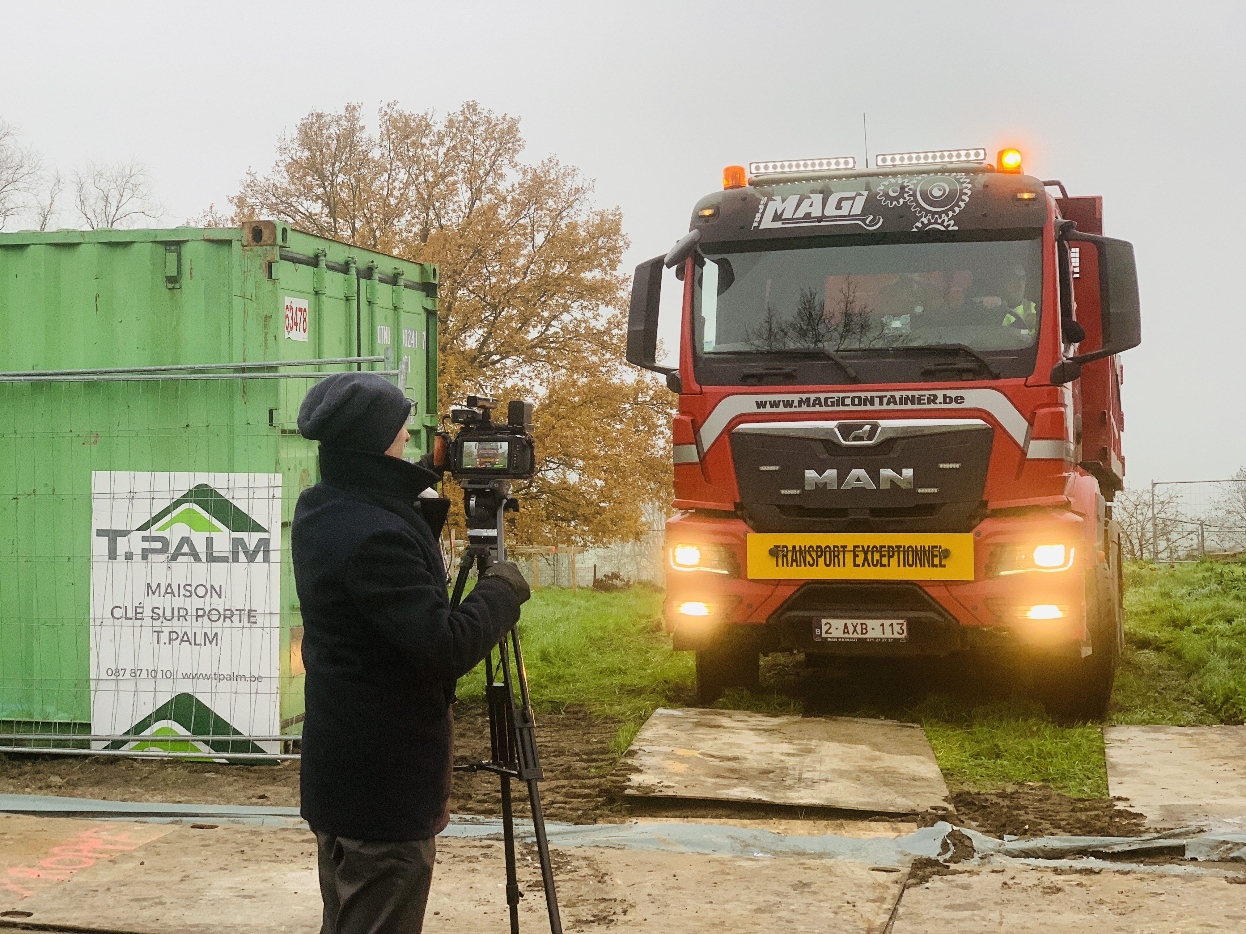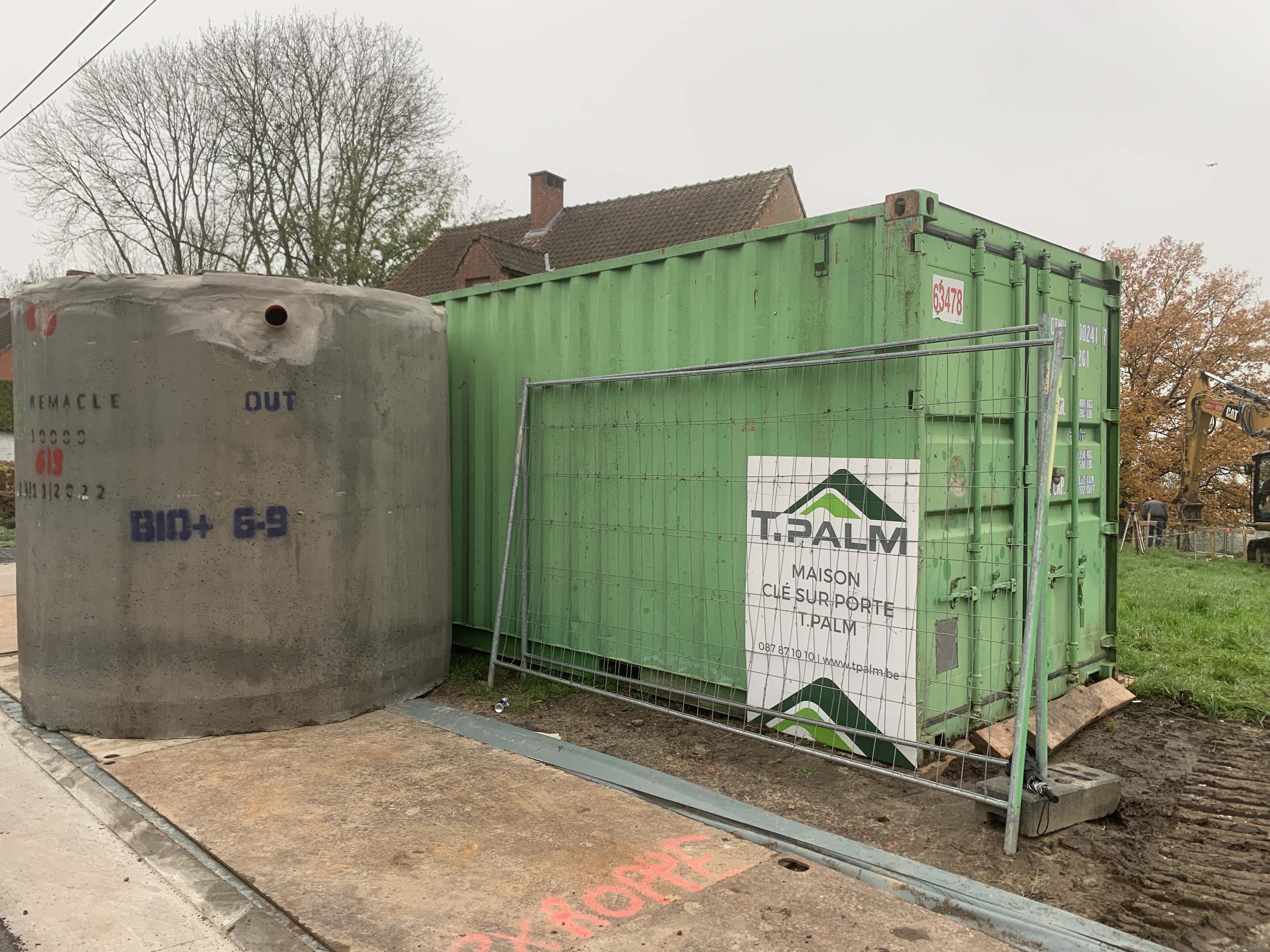 Fin novembre 2022, c’est le branle-bas de combat dans cette rue paisible du nord de Le Rœulx. Et pour cause : quelques camions et une grue se retrouvent au petit matin pour installer deux citernes, essentielles pour la future maison : une citerne récupératrice d’eau de pluie et une micro station d’épuration. Nous étions sur place, avec notre caméra et notre drone, pour filmer le début des manoeuvres et recueillir les impressions d’Alexandre, futur propriétaire, et l’avis de Daniel Montreuil, le gestionnaire de projets T.Palm.
